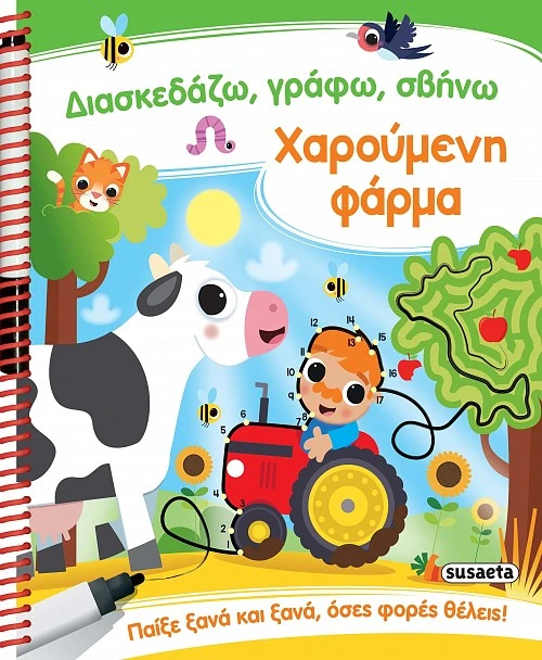 Διασκεδαστικές, φιλοζωικές και… αγροτικές δραστηριότητες παρέα με τα ζωάκια του αγροκτήματος! Στο βιβλίο αυτό θα βρεις απίθανους λαβύρινθους, θα ενώσεις τελείες, θα βρεις διαφορές, θα συμπληρώσεις εικόνες… Μην ανησυχήσεις αν κάτι δεν κάνεις σωστά! Το μαρκαδοράκι σβήνει εύκολα για να προσπαθήσεις ξανά και ξανά!