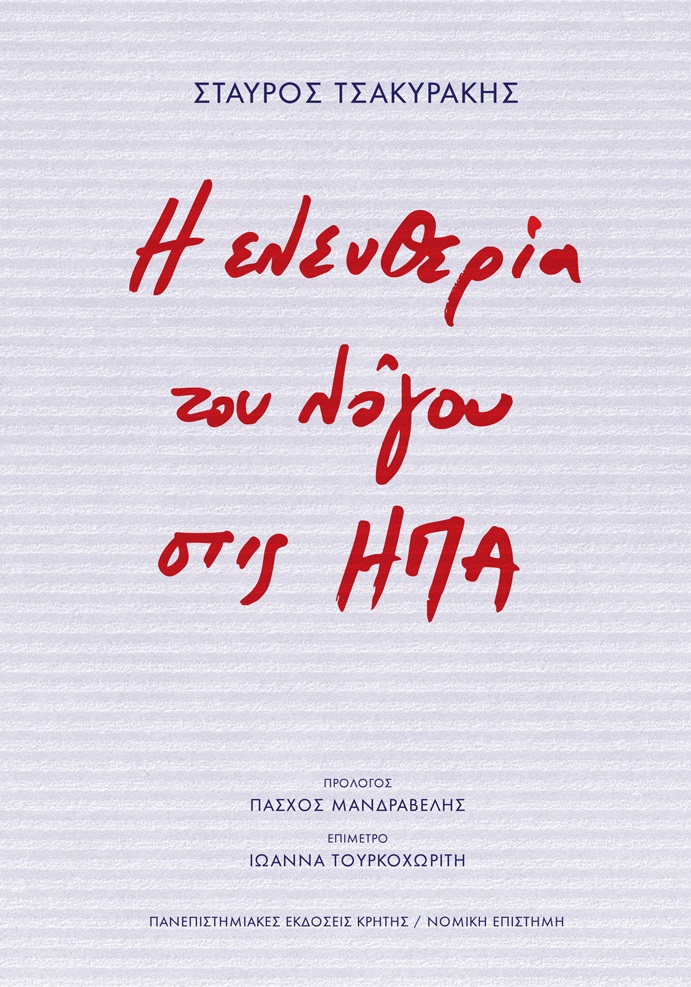 Η ελευθερία του λόγου στις ΗΠΑ, το εμβληματικότερο ίσως κείμενο του Σταύρου Τσακυράκη, υπήρξε ορόσημο στην ελληνική βιβλιογραφία της ελευθερίας της έκφρασης, καθώς εισήγαγε το ελληνικό κοινό στη νομολογία του Ανώτατου Δικαστηρίου των ΗΠΑ και δίδαξε γενιές φοιτητών. Η νέα του έκδοση έχει εμπλουτιστεί με μεταγενέστερες σημαντικές αποφάσεις του ίδιου δικαστηρίου, πρόλογο και εκτενές επίμετρο.