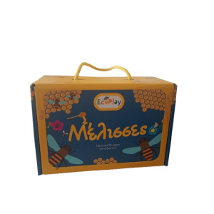 Ένα βαλιτσάκι από χαρτόνι που περιέχει 20 παιχνίδια σε ένα. Και αυτά δεν είναι απλά παλιά παιχνίδια, αλλά «έξυπνα» παιχνίδια που διδάσκουν στα παιδιά τη βιωσιμότητα και το σεβασμό στη φύση. Πρωταγωνιστές όλων των παιχνιδιών είναι οι μέλισσες, ακούραστες και εργατικοί φρουροί της βιοποικιλότητας. Από παζλ μέχρι τικ τακ, από ντόμινο μέχρι έναν πίνακα με ζάρια και μάρκες, αυτό το κουτί τα έχει πραγματικά όλα! Και αν δεν γνωρίζετε τους κανόνες των παιχνιδιών, μην απελπίζεστε: όλα συνοδεύονται από ένα φυλλάδιο οδηγιών για να μάθετε πώς να παίζετε καθεμία από τις είκοσι προτεινόμενες δραστηριότητες. Αυτό το κουτί παιχνιδιών είναι απόδειξη ότι η βιωσιμότητα και ο σεβασμός για τη φύση μπορούν επίσης να μαθευτούν… διασκεδάζοντας!
