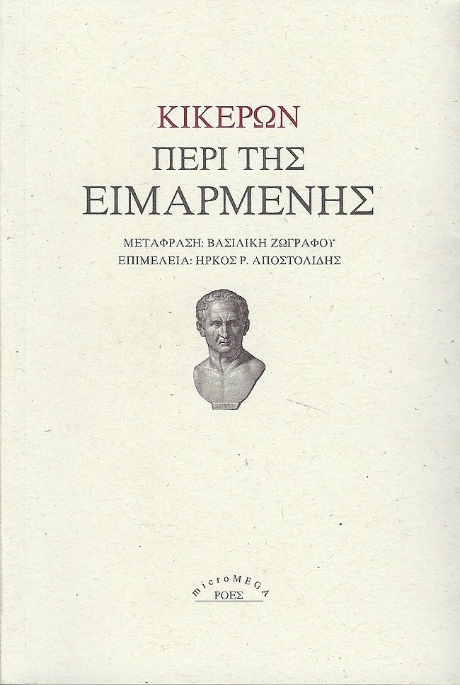 Το Περί της Ειμαρμένης είναι ένα τυπικό δείγμα φιλοσοφικού κικερώνειου διαλόγου, με συνεκτική δομή και αυστηρή διατύπωση. Ο Κικέρων εδώ κινείται στο εκλεκτικιστικό κλίμα των ιδεών της εποχής του και έχει δίπλα του όσο και απέναντί του τους Επικούρειους και τους Στωικούς, τον Καρνεάδη και το Χρύσιππο, μα και όλο το πνεύμα του καιρού. Επιχειρηματολογεί με πάθος ρωμαϊκό σε μια ταραγμένη περίοδο πολιτικής ασφυξίας. Καταπιάνεται με θέματα μεγάλα, κοσμογονικά, και παλεύει…